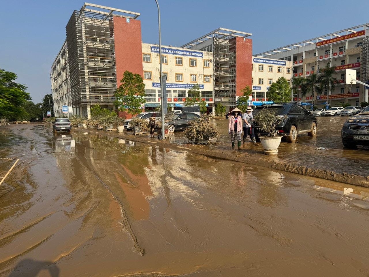 Sau khi nước rút, nhà trường dọn vệ sinh từ đó đến tối muộn ngày 12/10. Ông Hưng cho biết, 17h ngày 12/10, nhà trường vẫn tiếp tục dọn bùn ra khỏi trường. Ngoài nhân lực, trường đã phải thuê 3 máy gạt, 3 xe hút bùn, 1 xe chở đất để khắc phục hậu quả.