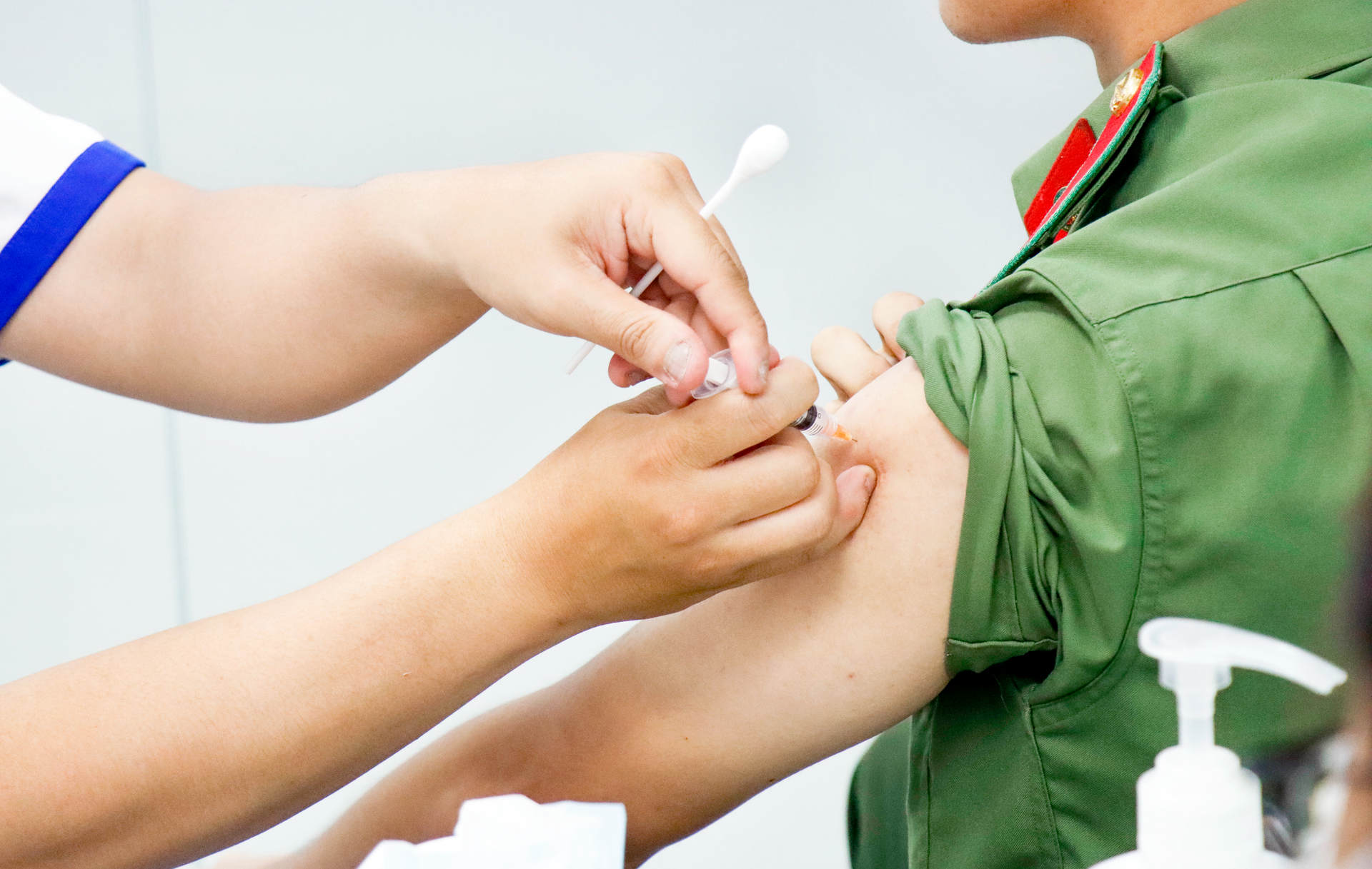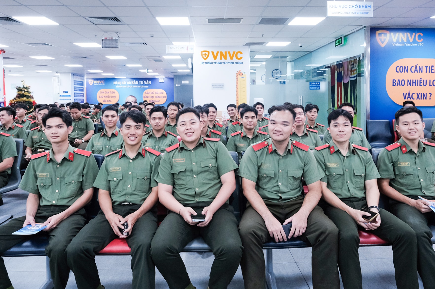 VNVC Thủ Đức, TP HCM, tiêm miễn phí vaccine uốn ván cho 110 cán bộ, học viên công an tham gia cứu trợ vùng lũ, chiều 12/12.