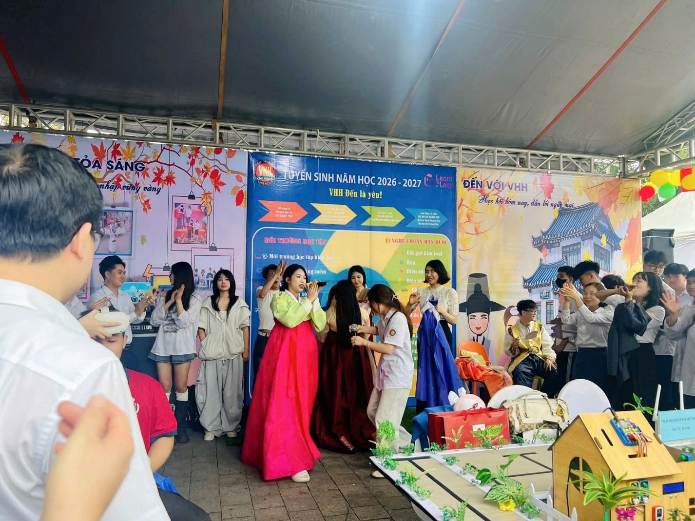 Không dừng lại ở công nghệ, gian hàng của Nhà trường còn mang đến bầu không khí giao lưu văn hóa trẻ trung, sôi nổi với hàng loạt hoạt động mang đậm dấu ấn Việt Nam – Hàn Quốc như các tiết mục K-POP, trình diễn thời trang Hanbok, chụp ảnh tương tác, cùng các trò chơi truyền thống Việt Nam – Hàn Quốc. Sự kết hợp hài hòa giữa công nghệ và văn hóa đã giúp gian hàng trở nên khác biệt: vừa hiện đại, bắt nhịp xu thế mới, vừa gần gũi, sinh động và giàu cảm xúc đối với giới trẻ. Các hoạt động giao lưu này cũng được bố trí đan xen hợp lý trong suốt nhịp chương trình để liên tục tạo điểm dừng chân và sức hút với khách tham quan.