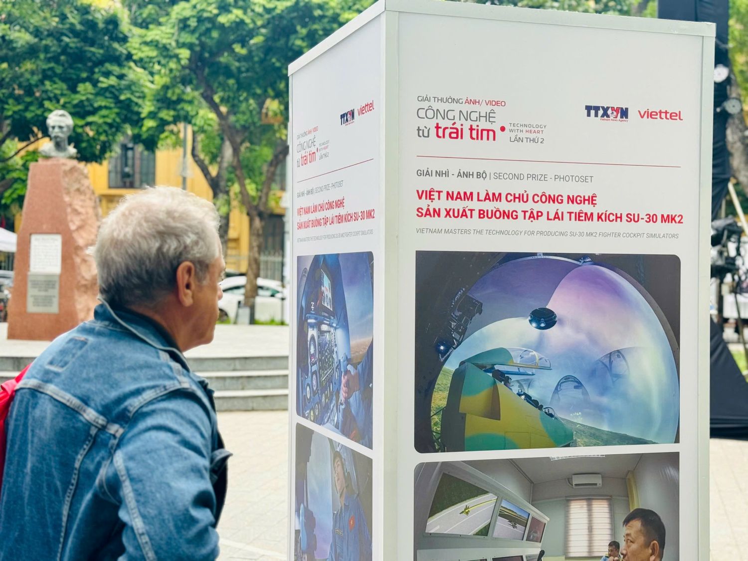 Không gian triển lãm được thiết kế theo hướng mở, kết hợp giữa công nghệ trình chiếu hiện đại và nghệ thuật thị giác, giúp người xem vừa thưởng lãm, vừa tương tác với các tác phẩm qua mã QR, màn hình cảm ứng và khu chụp ảnh sáng tạo. Triển lãm mang đến cảm giác gần gũi mà mới mẻ: Công nghệ không còn ở trong phòng thí nghiệm hay nhà máy, mà hiện diện giữa đời sống – giữa công viên, giữa những con người bình dị.