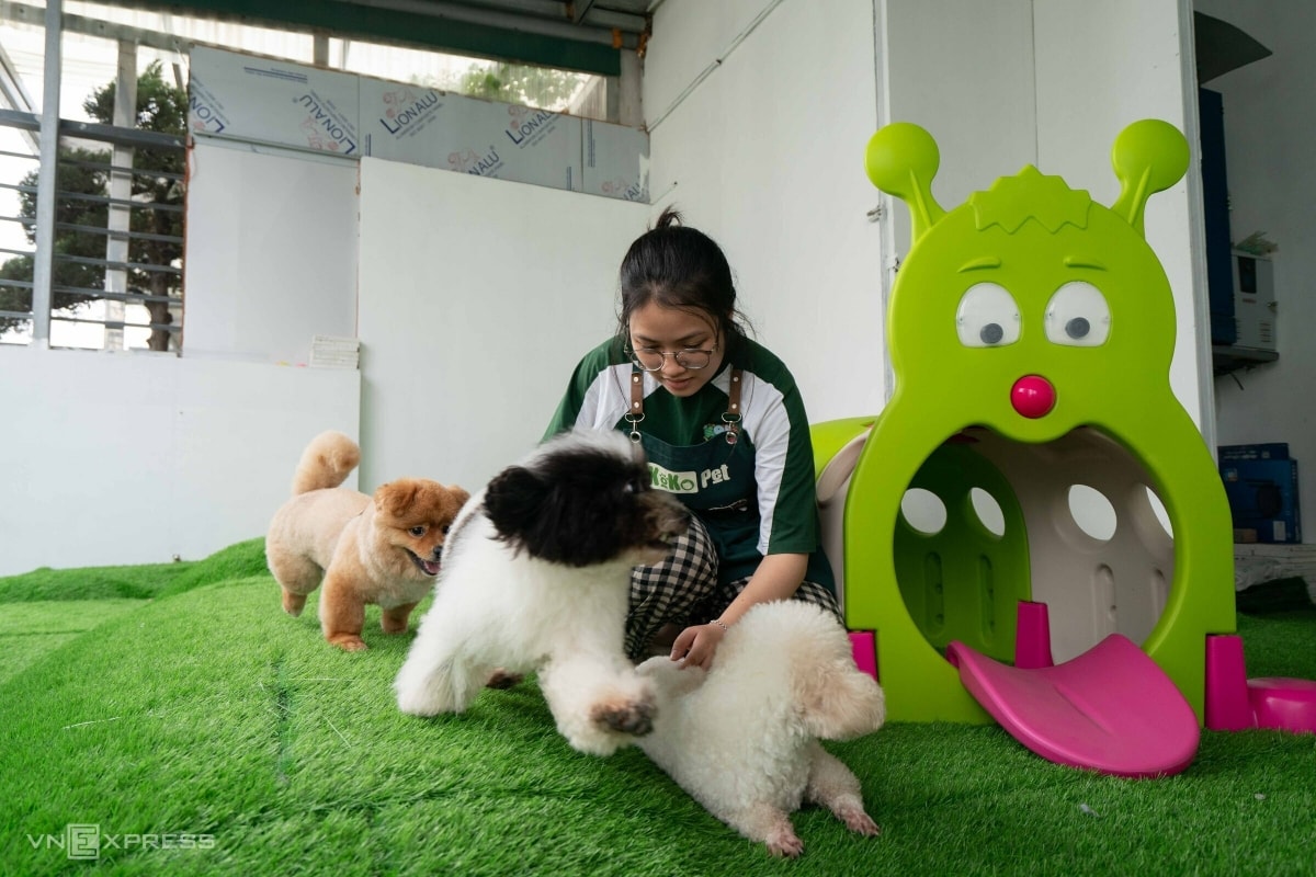 Giá trông giữ tính theo cân nặng, với thú cưng dưới 5 kg khoảng 150.000 đồng mỗi ngày, không phụ thu dịp Tết. Khách thường đặt chỗ trước khoảng 10 ngày, mang thú cưng đến gửi từ 26-27 Tết.