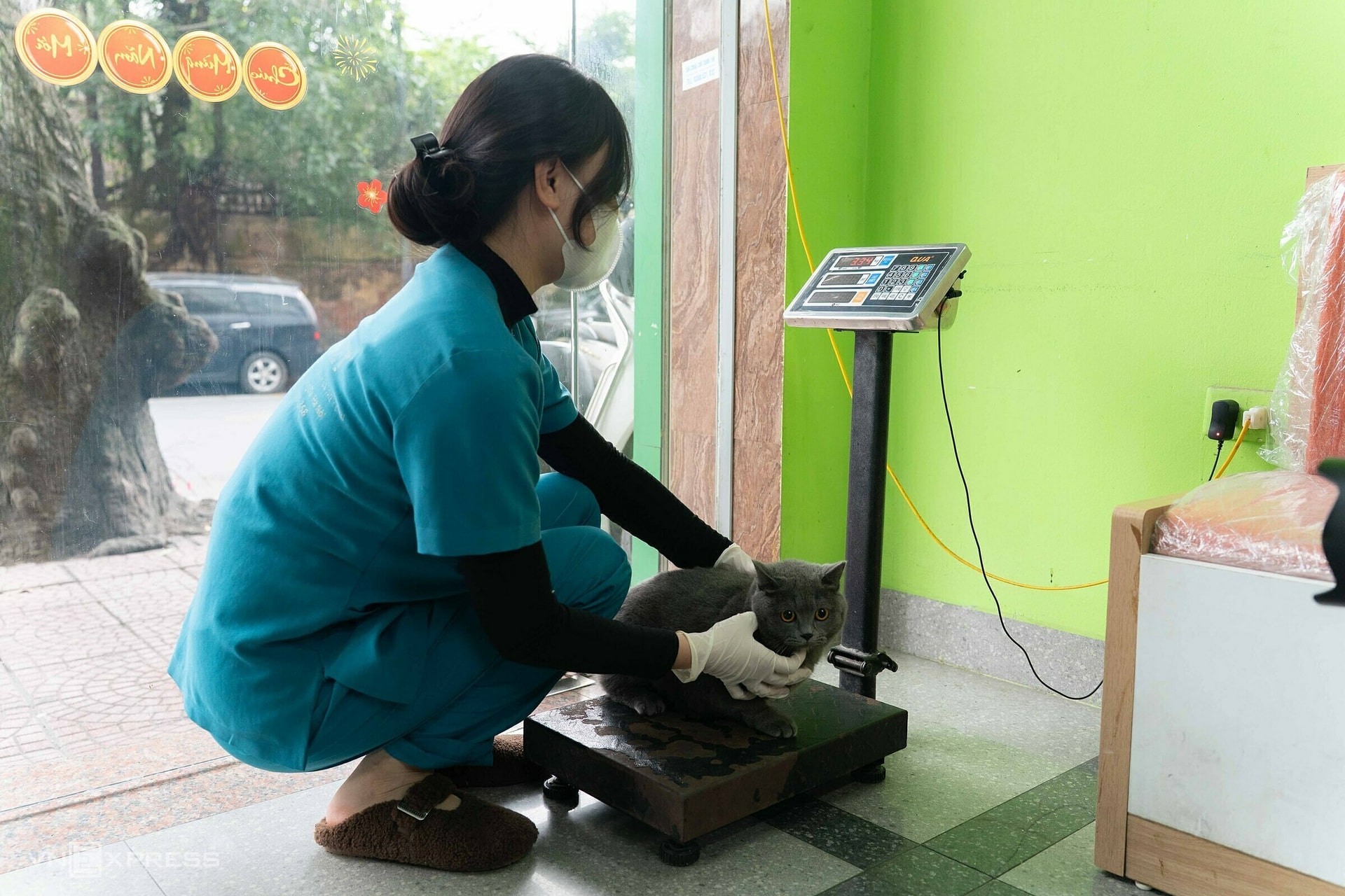 Trước khi nhận trông giữ hoặc điều trị, thú cưng được cân, đo các chỉ số như trọng lượng, nhiệt độ để xây dựng phương án chăm sóc, điều trị phù hợp.