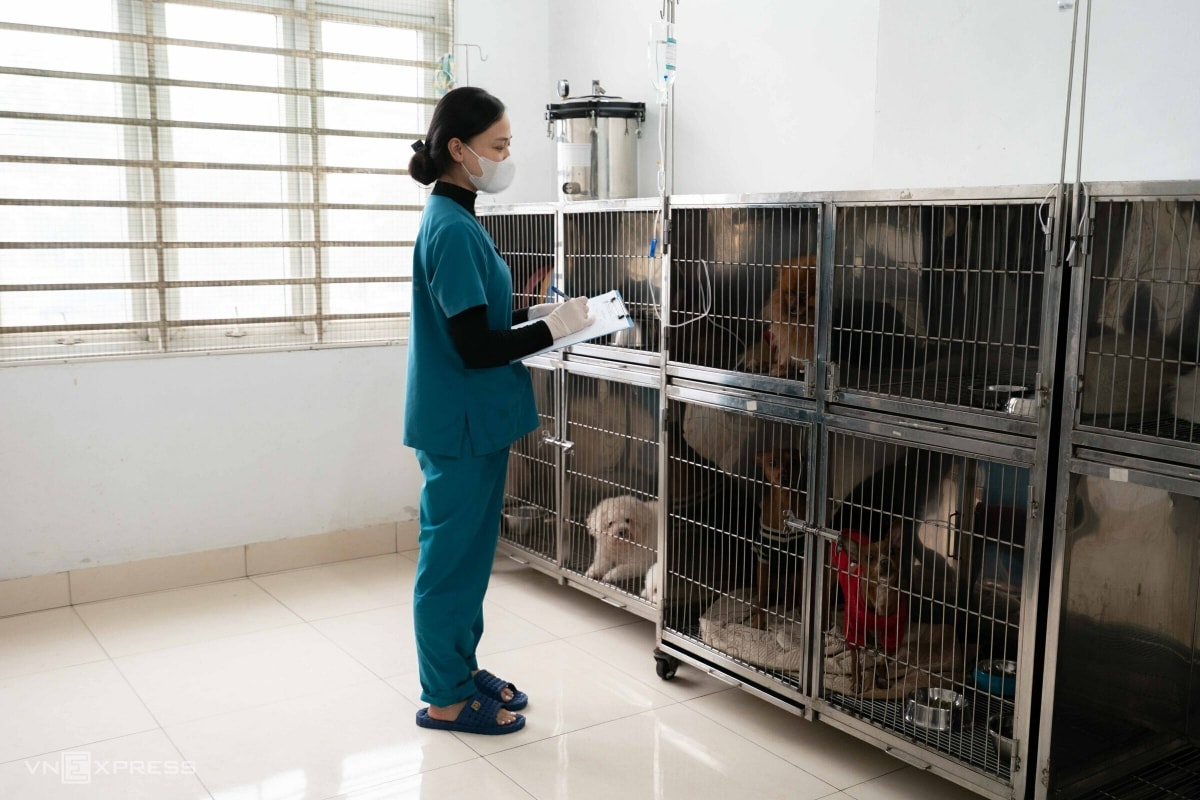 "Chúng tôi theo dõi triệu chứng lâm sàng, quan sát phân và biểu hiện cảm xúc của vật nuôi, nếu có dấu hiệu bất thường sẽ báo chủ ngay để xử lý", bác sĩ thú y Phạm Thị Mai cho biết.