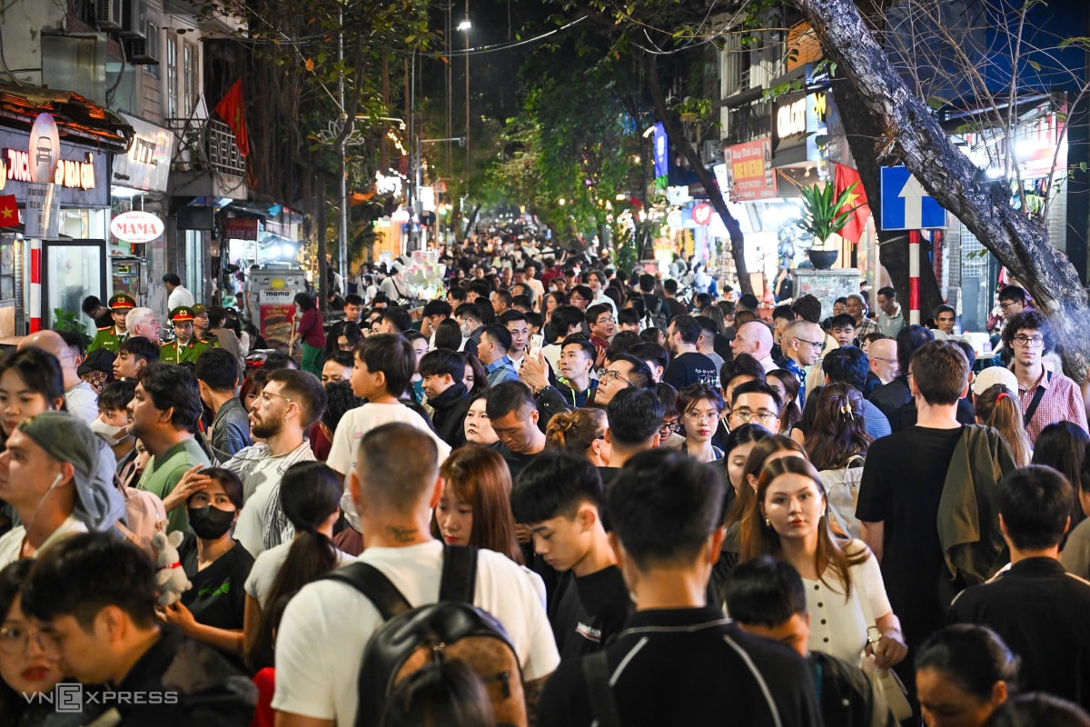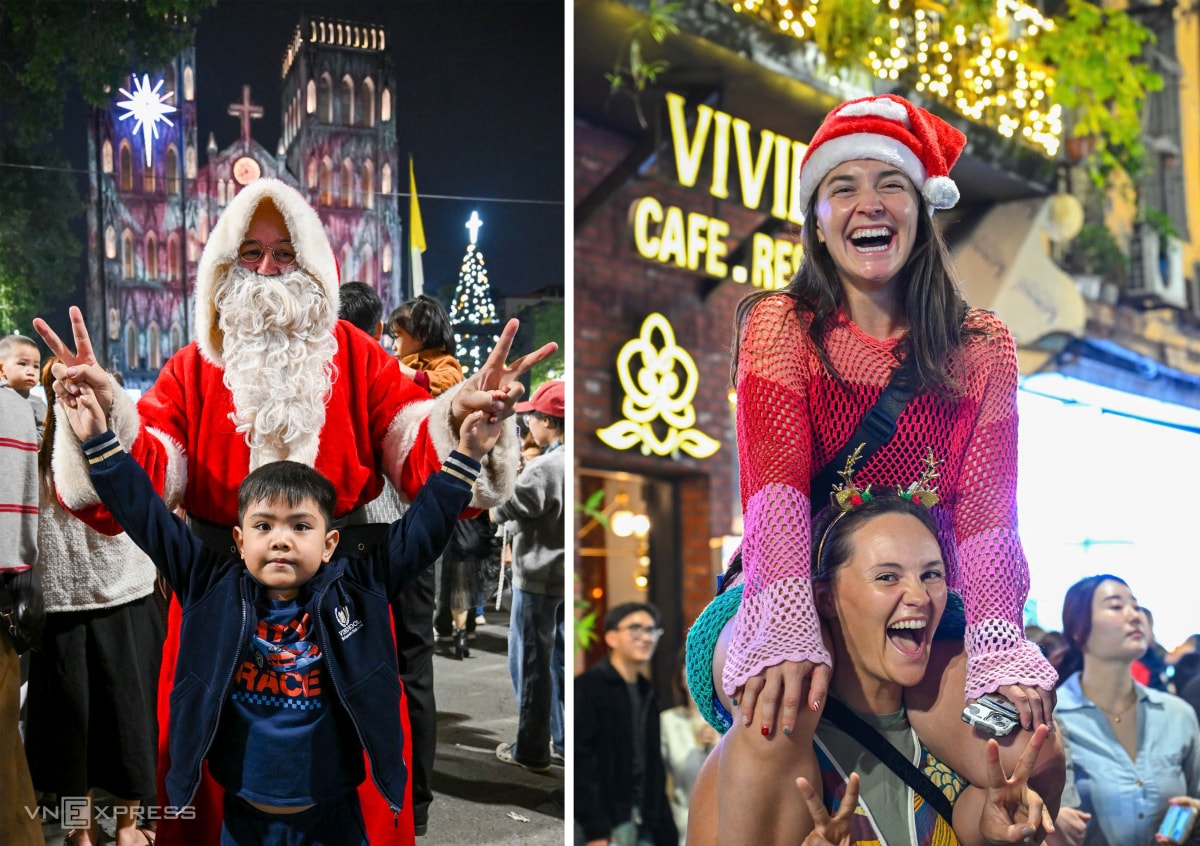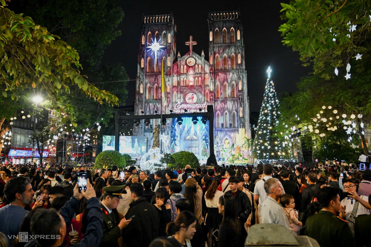 Tại Hà Nội, tiết trời khoảng 21 độ C, đông đảo người dân, du khách đổ về Nhà thờ Lớn (phường Hoàn Kiếm) dự lễ hoan ca mừng Chúa Giáng sinh và thánh lễ trong đêm.Phố Lý Quốc Sư dẫn vào Nhà thờ Lớn ken đặc người đổ về.Lúc 20h, Nhà thờ Lớn bắt đầu chương trình âm nhạc với các bài hát ca ngợi Chúa. Giáng sinh là đại lễ của người Công giáo mừng sự kiện Chúa Jesus chào đời. Thánh lễ Vọng được tổ chức đêm 24/12, lễ chính vào ngày 25/12. Năm 2025 được Tòa thánh Vatican chọn làm Năm Thánh. Theo truyền thống Giáo hội Công giáo, Năm Thánh là sự kiện tôn giáo lớn, đánh dấu một năm tha tội và hình phạt do tội gây ra, một năm hòa giải giữa những người đối lập nhau, một năm hoán cải và lãnh nhận Bí tích Hòa giải.Du khách nước ngoài hóa trang thành ông già Noel vui đùa trước Nhà thờ Lớn.