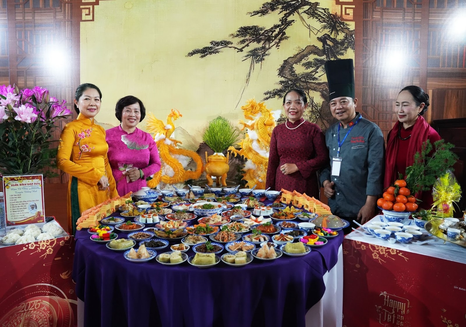 Mâm cỗ chay truyền thống Huế, với sự tham gia cố vấn của Nghệ nhân Quốc gia Mai Thị Trà và Nghệ nhân ẩm thực Trần Thị Hồng Loan, mang chiều sâu văn hóa cung đình hòa quyện tinh thần Phật giáo. Sự thanh nhã trong tạo hình, tinh tế trong phối vị và màu sắc nhẹ nhàng phản ánh quan niệm hướng thiện, tiết chế và sự trân trọng tự nhiên – một nét đặc trưng của ẩm thực Huế mỗi độ Xuân về.