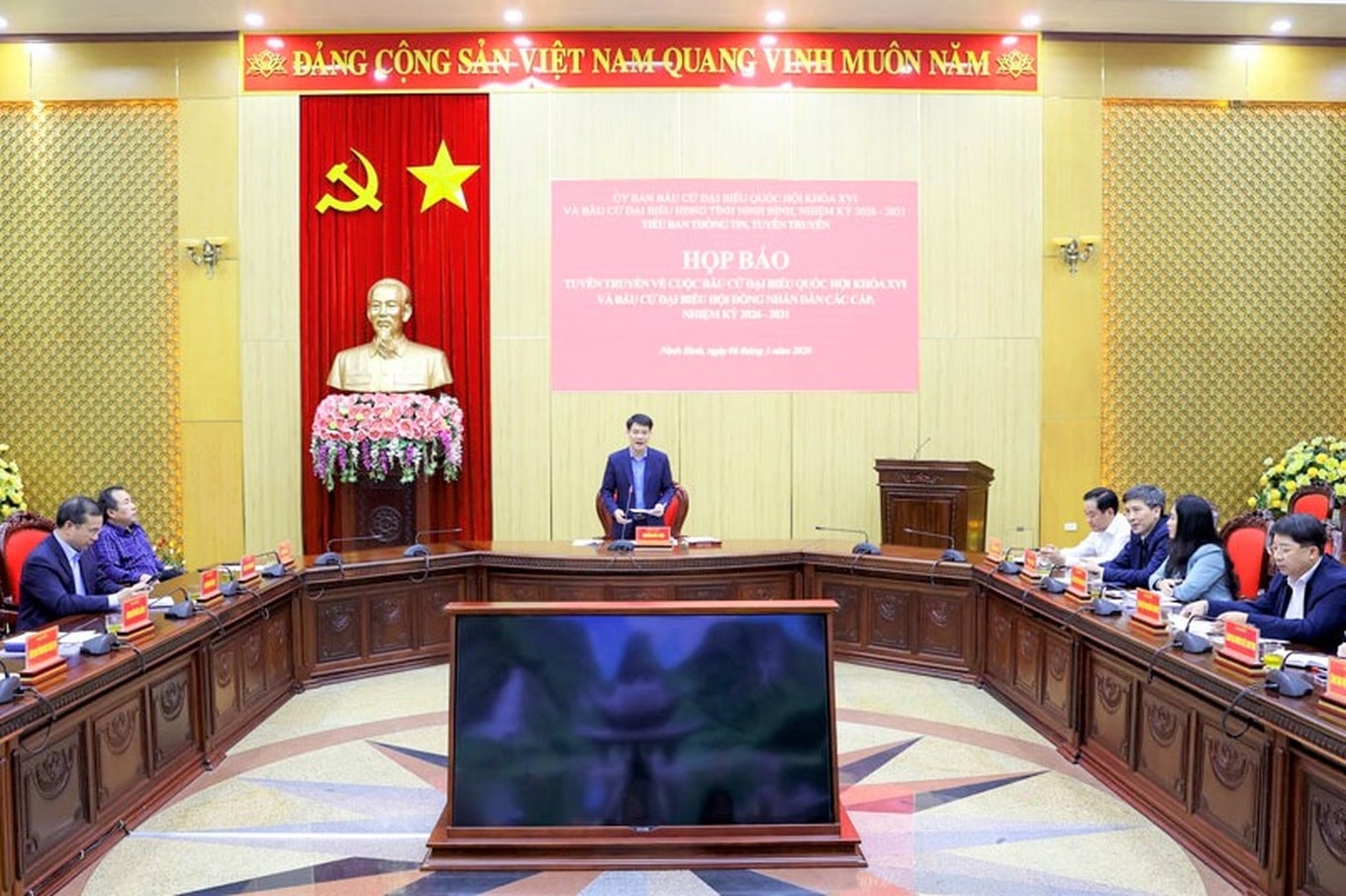 Chiều 6/3, Tiểu ban thông tin, tuyên truyền, Ủy ban bầu cử đại biểu Quốc hội khóa XVI và bầu cử đại biểu HĐND tỉnh Ninh Bình, nhiệm kỳ 2026-2031 (gọi tắt là Ủy ban bầu cử tỉnh Ninh Bình) tổ chức họp báo tuyên truyền về cuộc bầu cử đại biểu Quốc hội khóa XVI và Bầu cử đại biểu HĐND các cấp nhiệm kỳ 2026-2031.