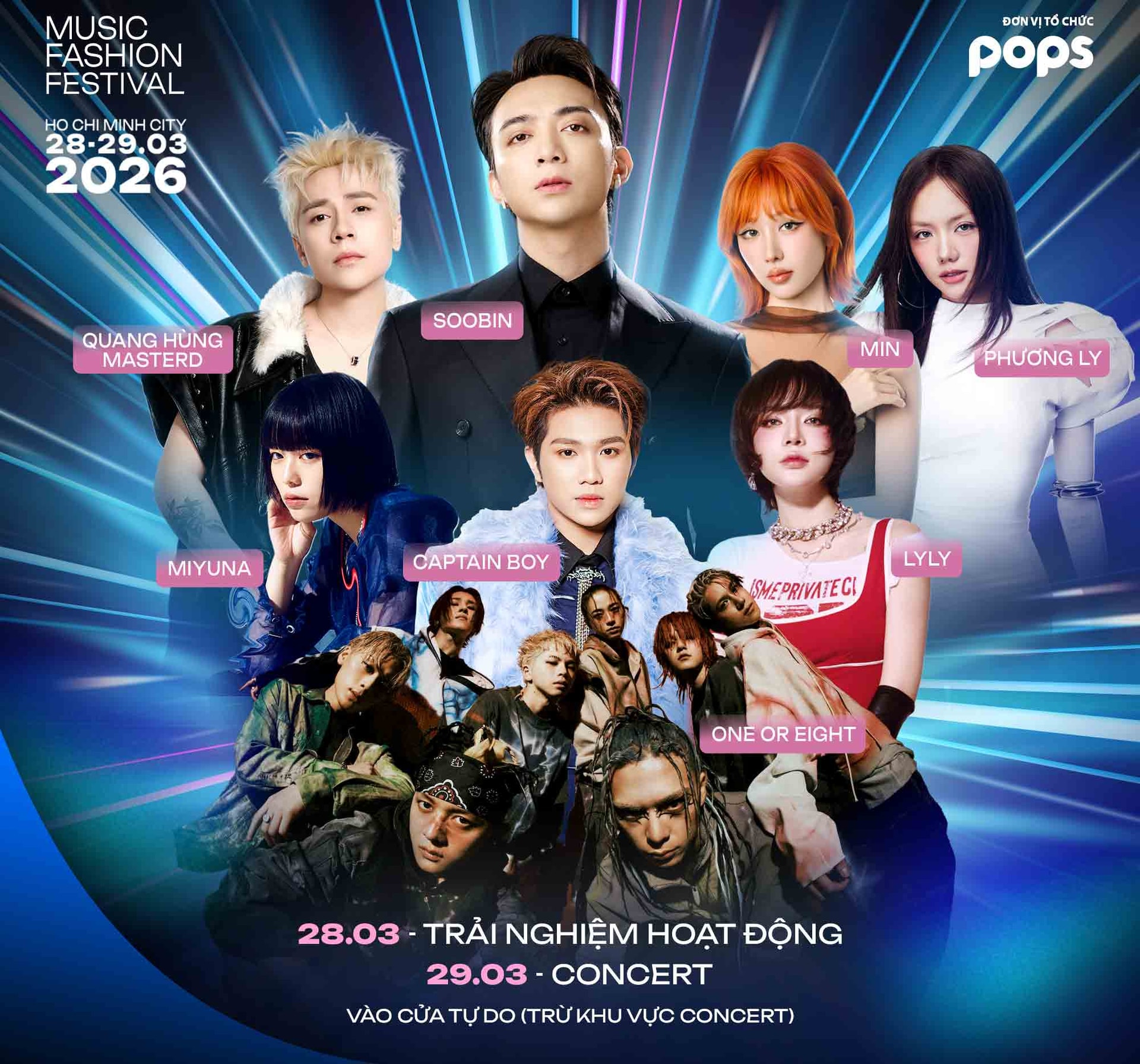Trong đêm nhạc có sự xuất hiện của quán quân Sing! Asia 2025 Miyuna và nhóm nhạc One Or Eight đến từ Nhật Bản. Bên cạnh đó, các nghệ sĩ VN như Soobin, Quang Hùng MasterD, Min, Phương Ly, Rhyder, Captain Boy và LyLy cũng hứa hẹn mang đến các tiết mục ấn tượng cho người xem.