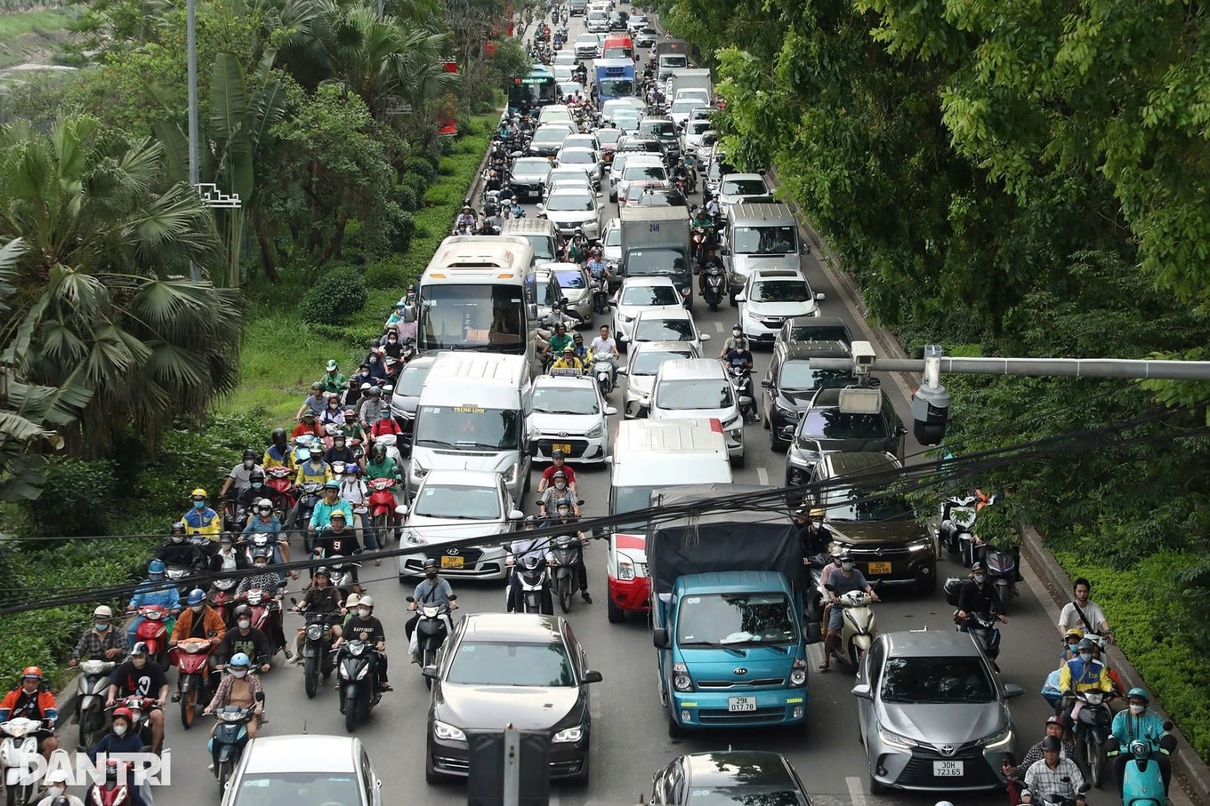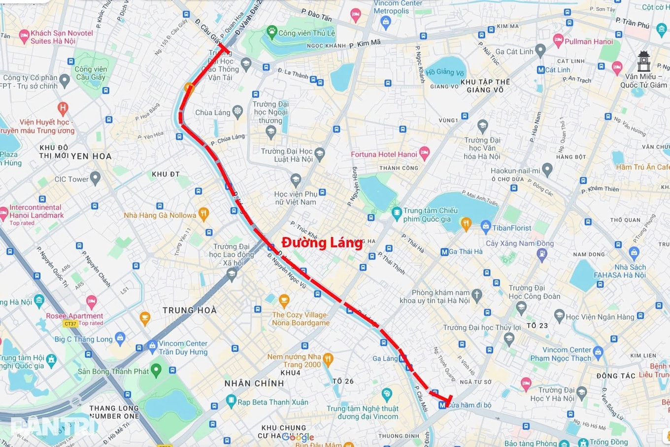 Đường Láng rộng khoảng 21m, thường xuyên xảy ra ùn tắc giờ cao điểm.