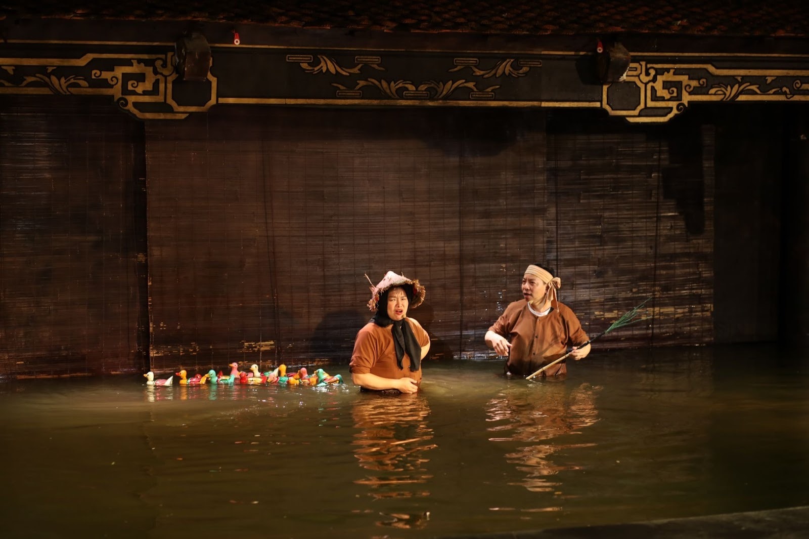 Workshop được thiết kế theo lộ trình mở với nhiều khu vực nối tiếp nhau. Ngay từ gian check-in, ban tổ chức đã tái hiện không gian đồng quê Bắc Bộ bằng chất liệu tre, nứa, rơm rạ và các chi tiết trang trí dân gian. Tiếp đó là khu trưng bày các tạo hình rối với kích thước lớn nhỏ khác nhau, mỗi hình tượng gắn với một lát cắt đời sống: từ sinh hoạt lao động, lễ hội làng quê đến những nhân vật quen thuộc trong văn hóa dân gian Việt Nam. Việc trưng bày không đặt nặng yếu tố thuyết minh khô cứng, mà hướng tới việc kể chuyện, để người xem tự hình dung bối cảnh và ý nghĩa của từng tạo hình.