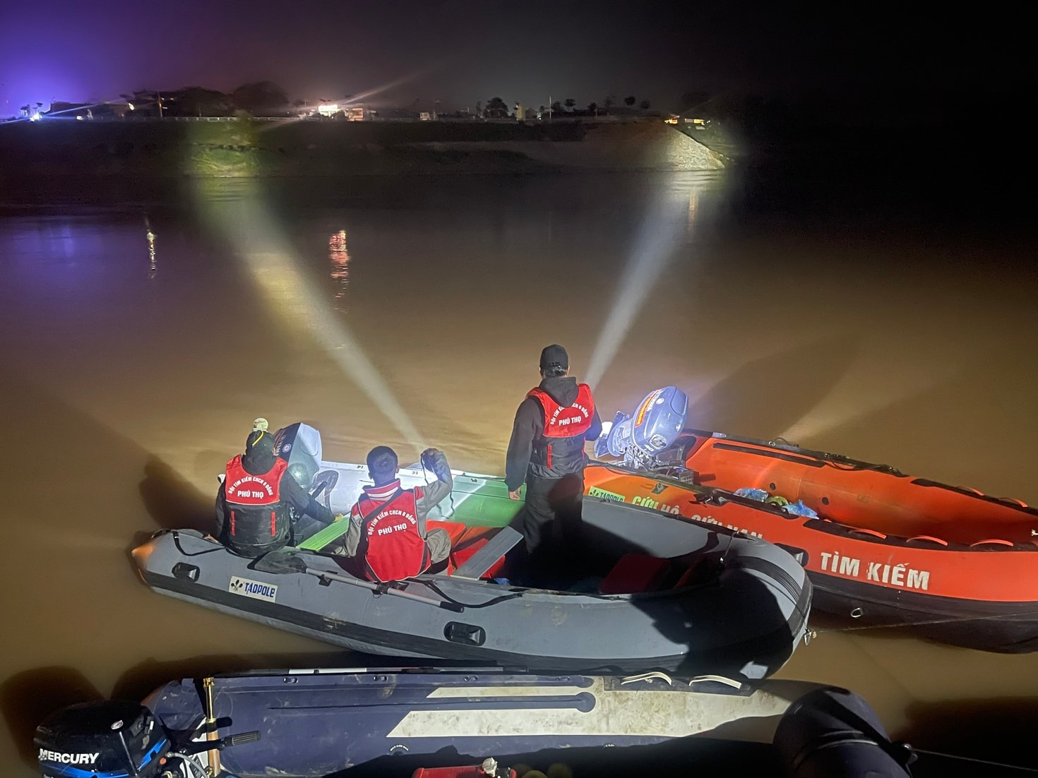 Đội Cứu hộ, cứu nạn 0 đồng Phú Thọ mang theo 4 cano chuyên dụng, 2 thiết bị lặn - robot chuyên dụng, phục vụ tìm kiếm người mất tích.