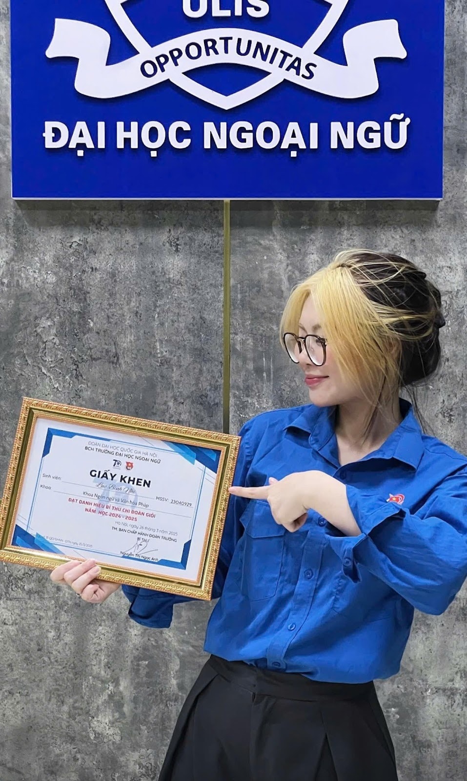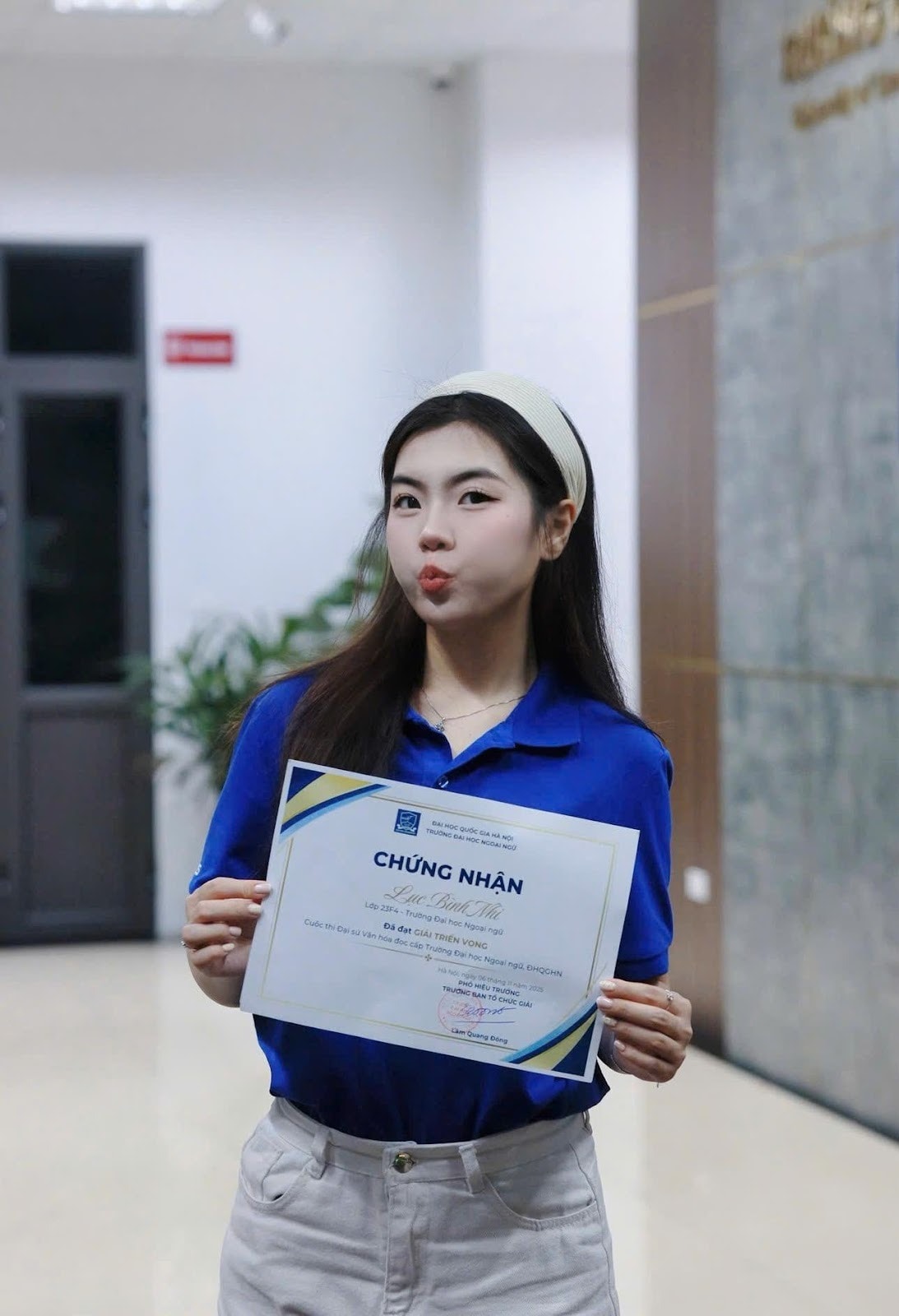 Với tinh thần không ngại thử thách và sự bền bỉ trong từng bước đi, Bình Nhi đang dần trở thành một trong những gương mặt sinh viên tiêu biểu của Trường Đại học Ngoại ngữ – Đại học Quốc gia Hà Nội, đồng thời truyền cảm hứng cho nhiều bạn trẻ dám bước ra khỏi vùng an toàn để khám phá khả năng của chính mình.