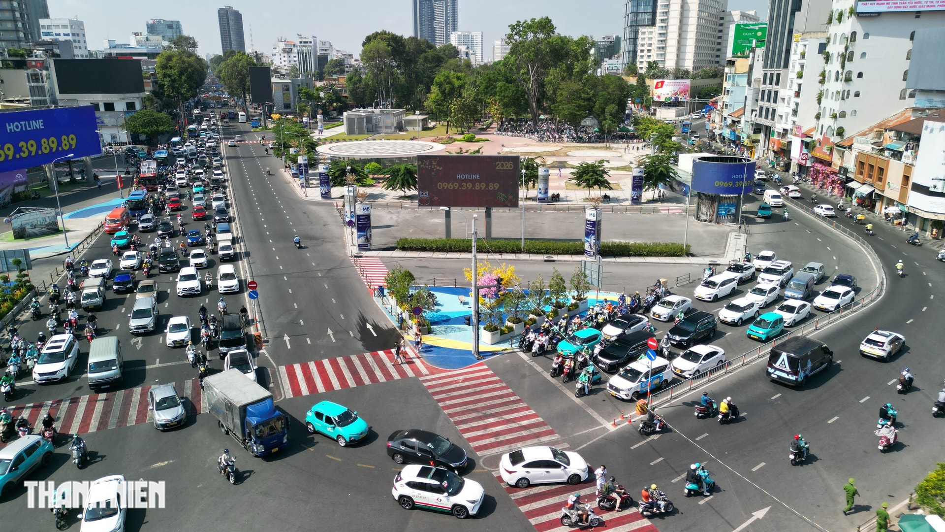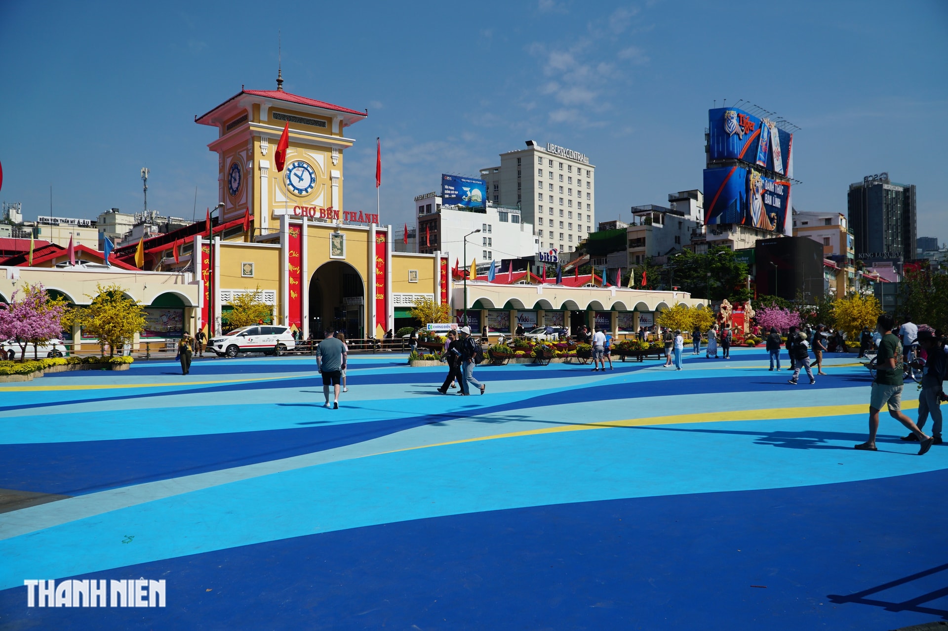 Sáng 4/2, sau nhiều ngày chỉnh trang sơn mới, khu vực quảng trường trước chợ Bến Thành (phường Bến Thành, TP.HCM) đã mở rào chắn cho người dân cùng du khách vào tham quan, chụp ảnh tết.