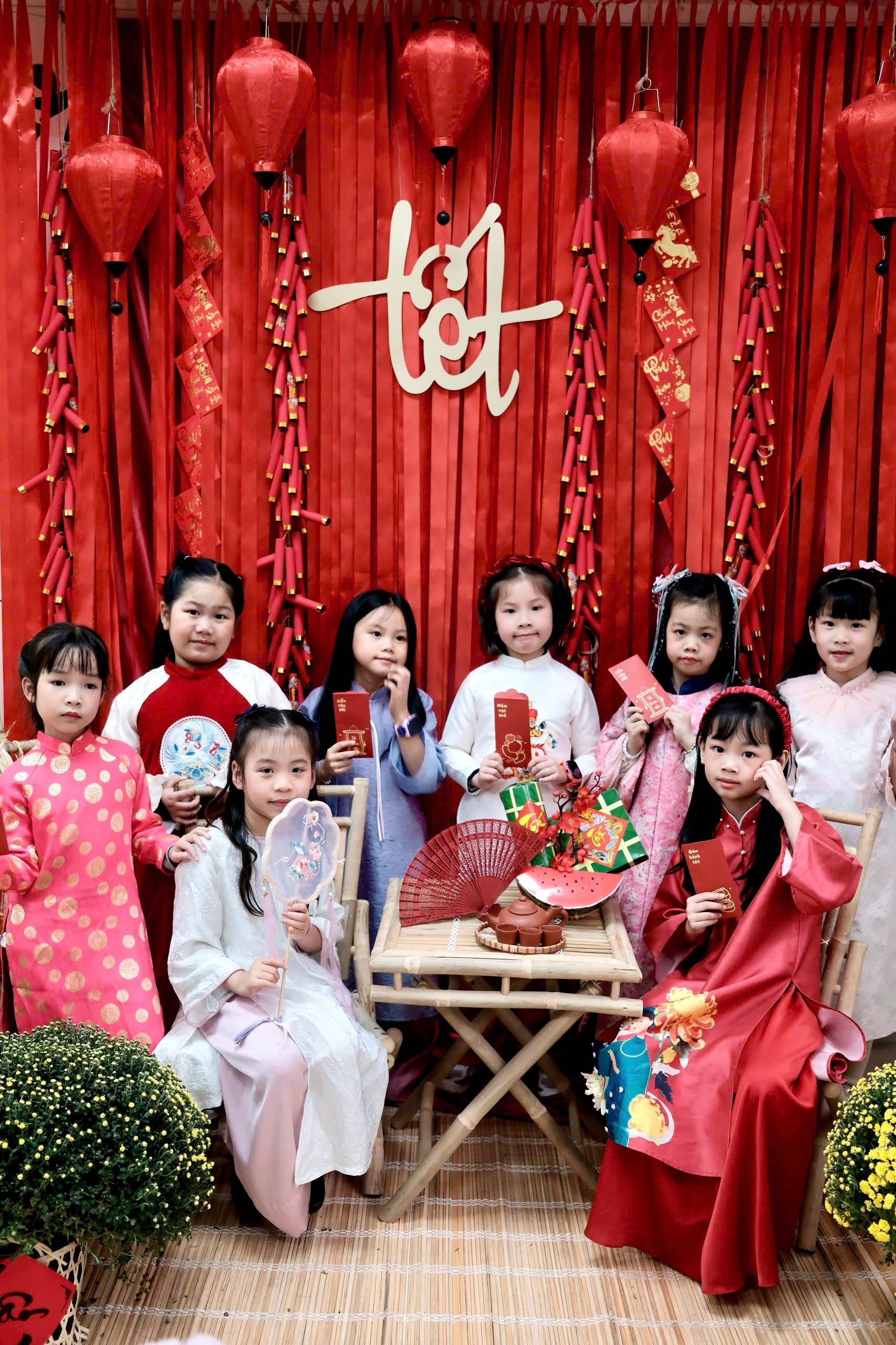 Không khí lớp học thêm phần sôi nổi với các trò chơi dân gian, hoạt động xổ số vui xuân, mang đến niềm vui háo hức và những tiếng cười giòn tan. Đặc biệt, hình ảnh các em học sinh trong những tà áo dài truyền thống, cùng nhau chụp ảnh Tết, trải nghiệm nặn tò he đã góp phần nuôi dưỡng trong các em tình yêu đối với văn hóa dân gian. Qua đó, các em không chỉ đón Tết bằng niềm vui, mà còn bằng sự trân trọng những giá trị truyền thống tốt đẹp của dân tộc.