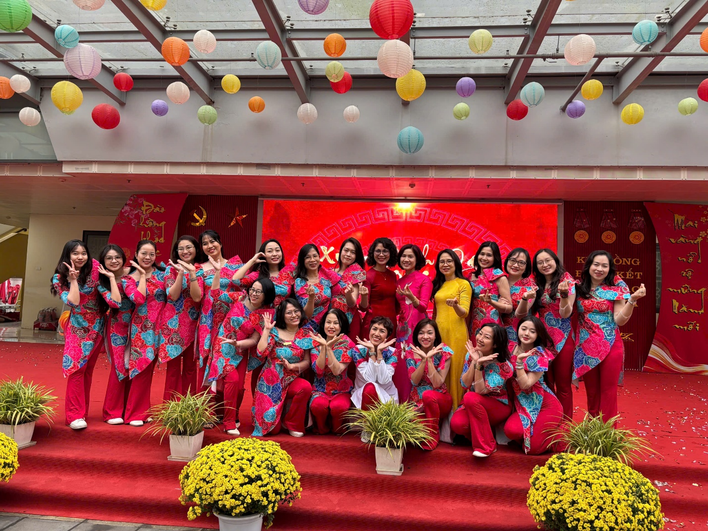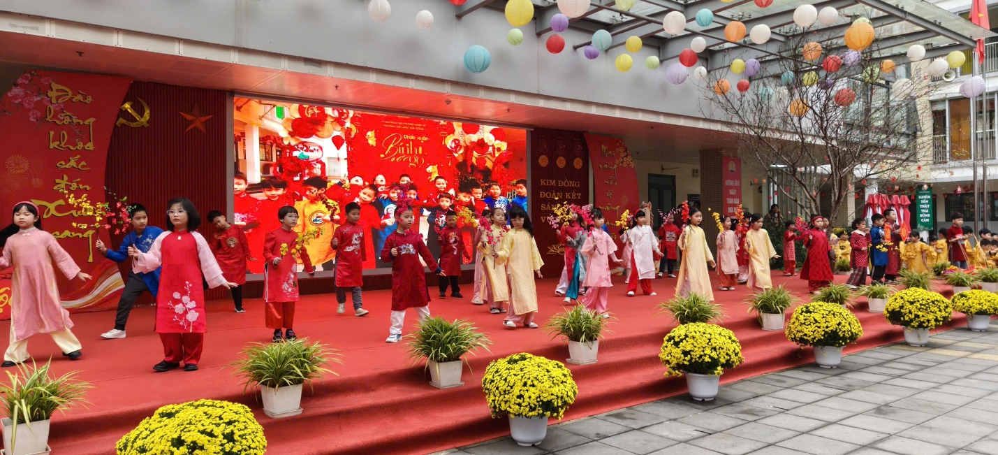 Những tiết mục với lời ca tươi vui, điệu múa sôi động hòa cùng sắc hoa rực rỡ đã làm cho ngày hội thêm phần trang trọng và giàu cảm xúc. Đặc biệt, hình ảnh học sinh súng sính trong những bộ áo dài truyền thống đủ sắc màu đã tạo nên một bức tranh xuân duyên dáng, đậm đà bản sắc Việt.
