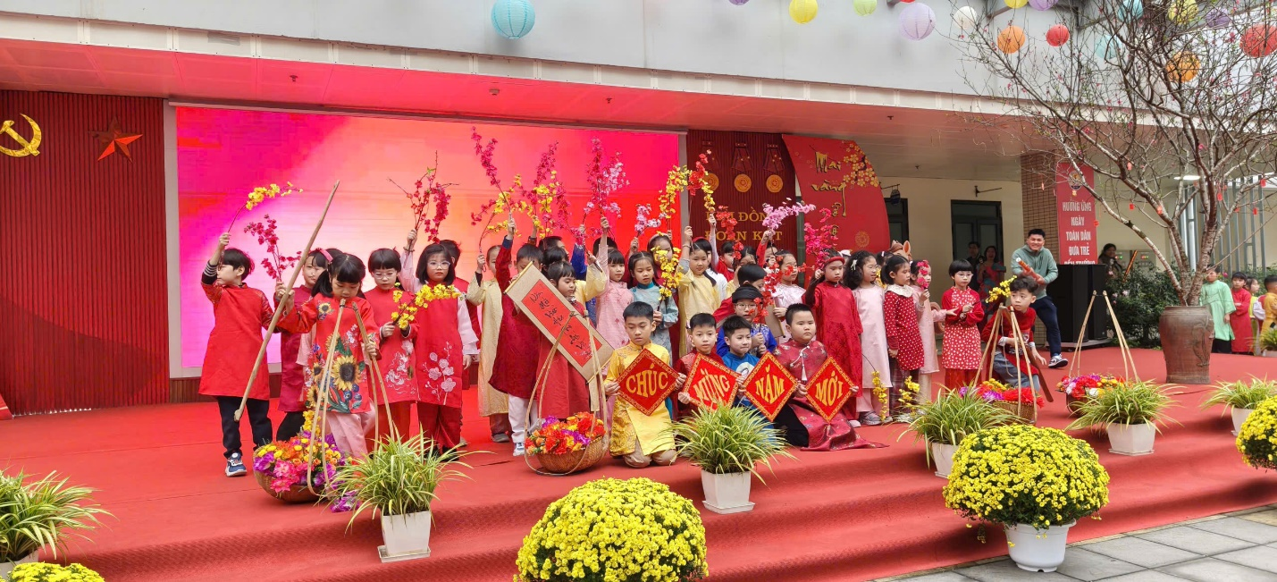 Trong những ngày qua, sắc xuân hiện diện rộn ràng trong từng lớp học. Với sự đồng hành của các bậc cha mẹ học sinh, cô và trò các lớp đã chủ động trang trí không gian học tập bằng cành đào, cây quất, câu đối đỏ, mâm ngũ quả và những góc “check-in” đón Tết rực rỡ sắc màu. Mỗi lớp học trở thành một “Góc xuân nho nhỏ”, lưu giữ những khoảnh khắc hồn nhiên, trong trẻo của tuổi thơ. Hoạt động “Thiết kế bao lì xì”, “Viết câu đối, thư pháp” đón Xuân đã khơi gợi sự sáng tạo, giúp các em học sinh gửi gắm những lời chúc đầu năm tốt đẹp bằng chính nét vẽ và ý tưởng của mình.