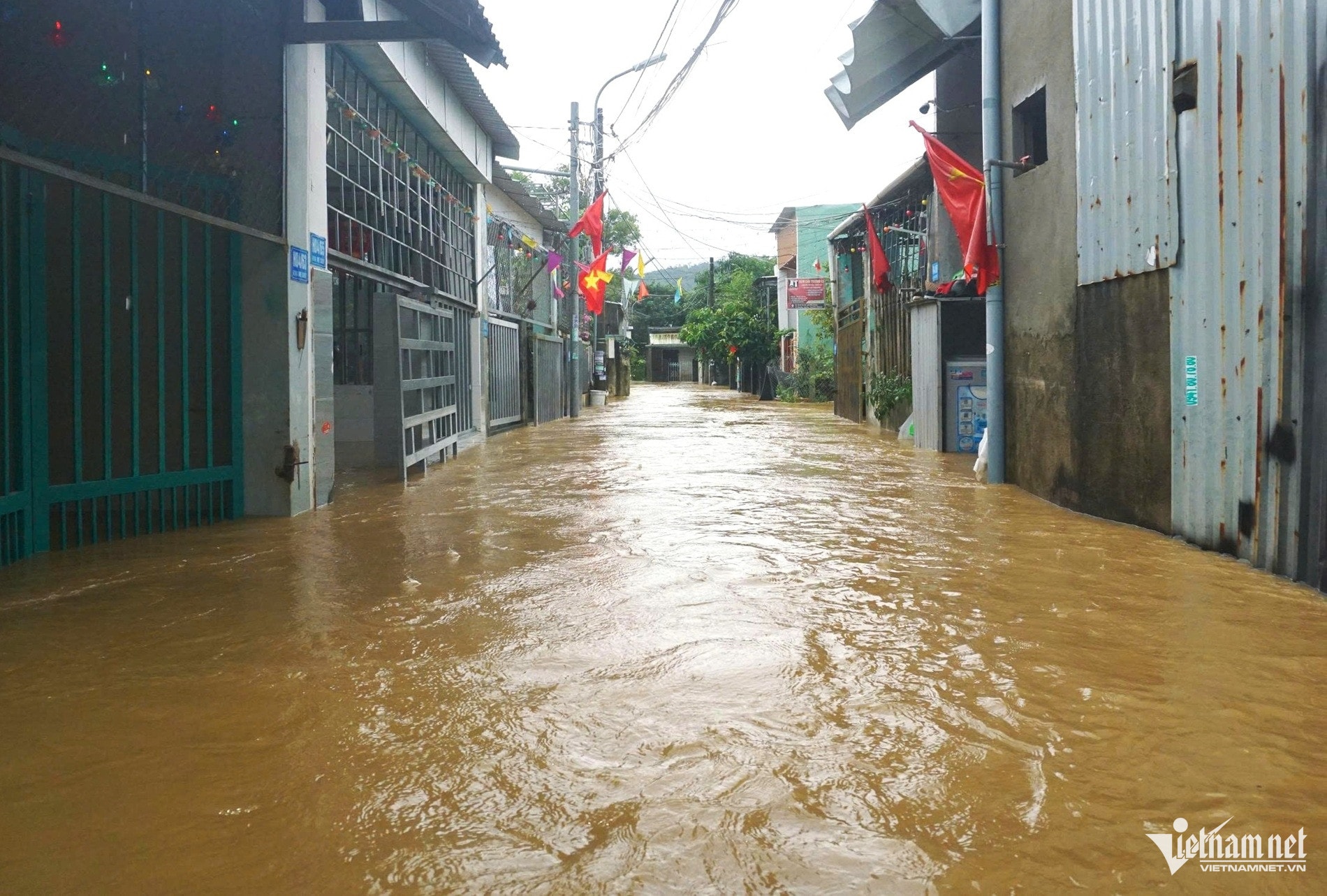 Ghi nhận của VietNamNet, nước dâng nhanh khiến nhiều dãy trọ, nhà dân bị ngập nặng, có nơi cao hơn 1m. Đồ đạc trôi nổi lềnh bềnh, sinh viên phải di chuyển tài sản lên cao hoặc sang nơi khác trú tạm.