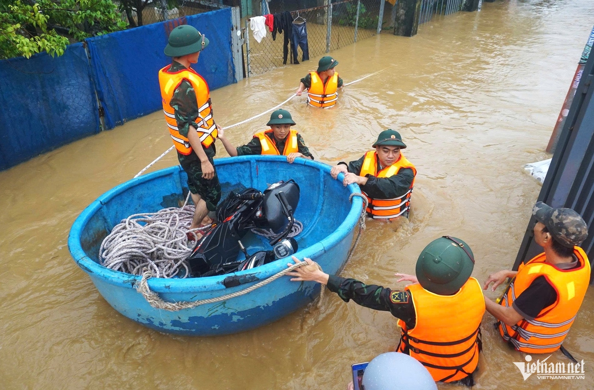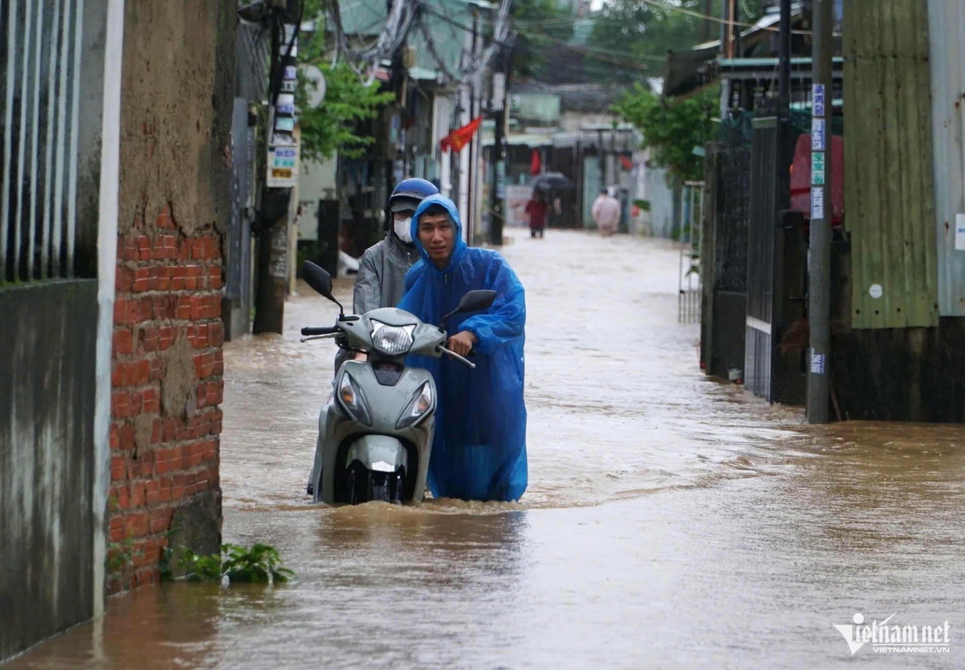 Từ sáng sớm, hàng trăm sinh viên thuê trọ quanh khu vực Trường ĐH Sư phạm (Đại học Đà Nẵng) tất tả ôm ba lô, quần áo, vật dụng cá nhân chạy lũ. Nhiều người phải lội giữa dòng nước đục ngầu, ngập đến thắt lưng để di chuyển ra các khu vực cao hơn.