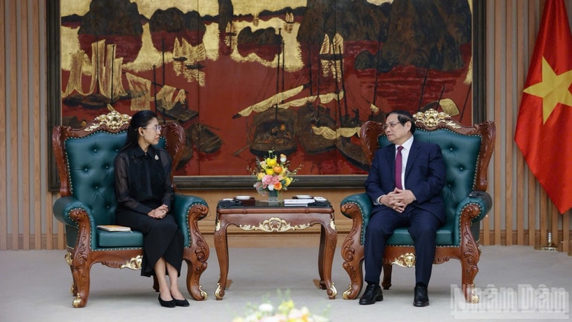 Chiều 13/3, tại Trụ sở Chính phủ, Thủ tướng Phạm Minh Chính tiếp bà Urawadee Sriphiromaya, Đại sứ Vương quốc Thái Lan tại Việt Nam để trao đổi về các biện pháp thúc đẩy quan hệ Đối tác chiến lược toàn diện Việt Nam-Thái Lan cũng như hợp tác nhằm bảo đảm an ninh năng lượng hai nước.