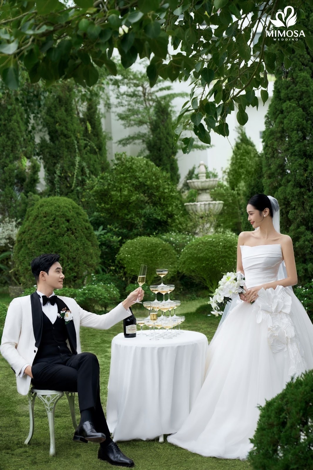 Nổi bật nhất là những mẫu album cưới Hàn Quốc tinh tế, concept áo dài và cổ phục hay concept sang chảnh với xe cổ. Chụp ảnh cưới tại Mimosa Wedding với các giá gói từ 6 - 50 triệu đồng phù hợp với cặp đôi có tài chính tầm trung và cao cấp.