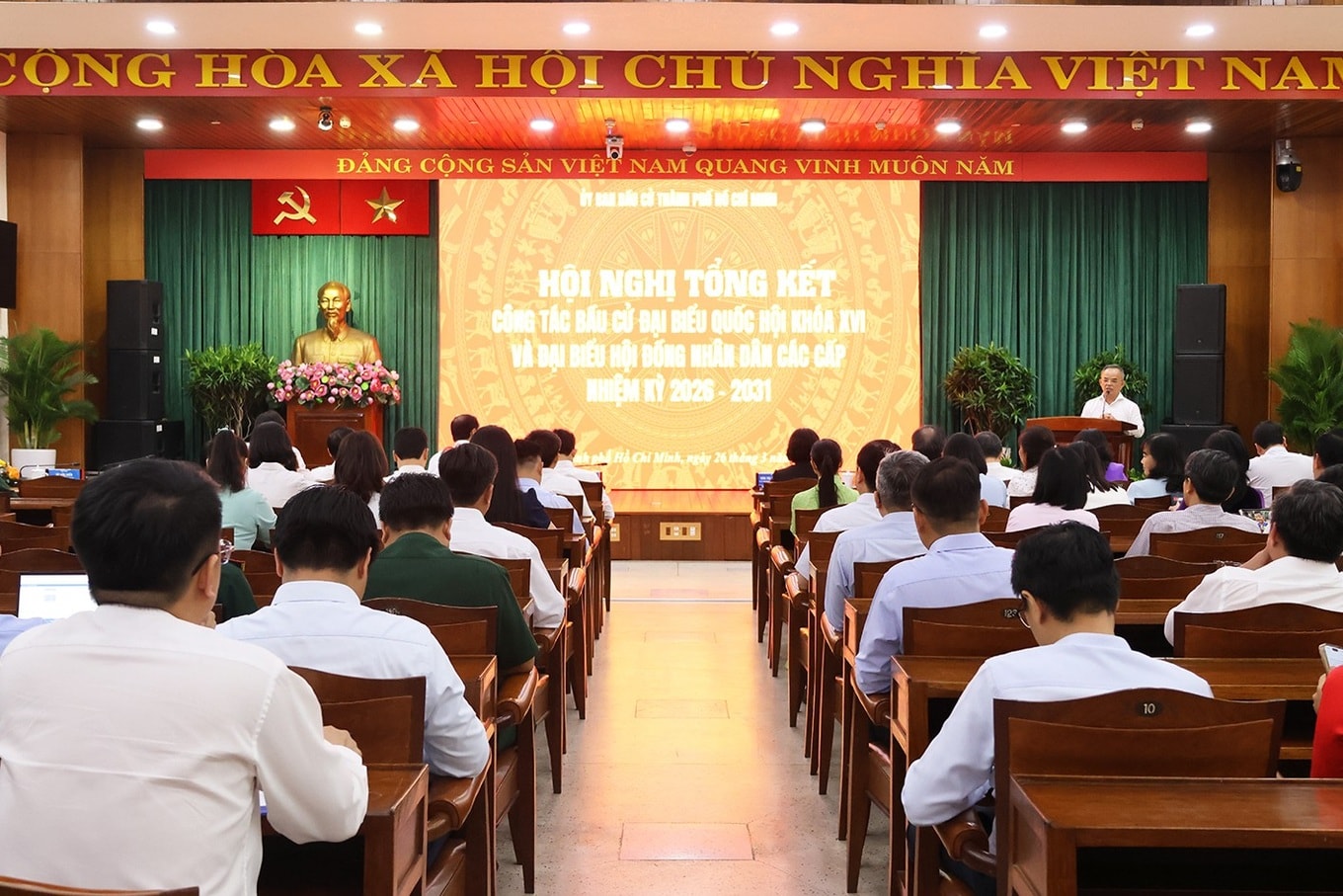 Ngày 26/3, Ủy ban bầu cử đại biểu Quốc hội và HĐND các cấp nhiệm kỳ 2026-2031 của TPHCM tổ chức hội nghị tổng kết công tác bầu cử. Hội nghị được tổ chức với hình thức trực tiếp và trực tuyến tới 168 phường, xã, đặc khu.