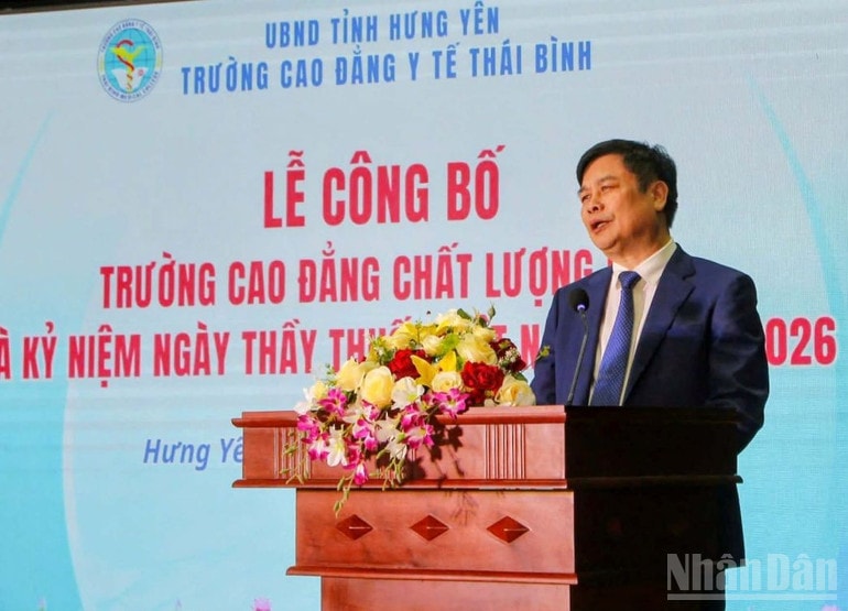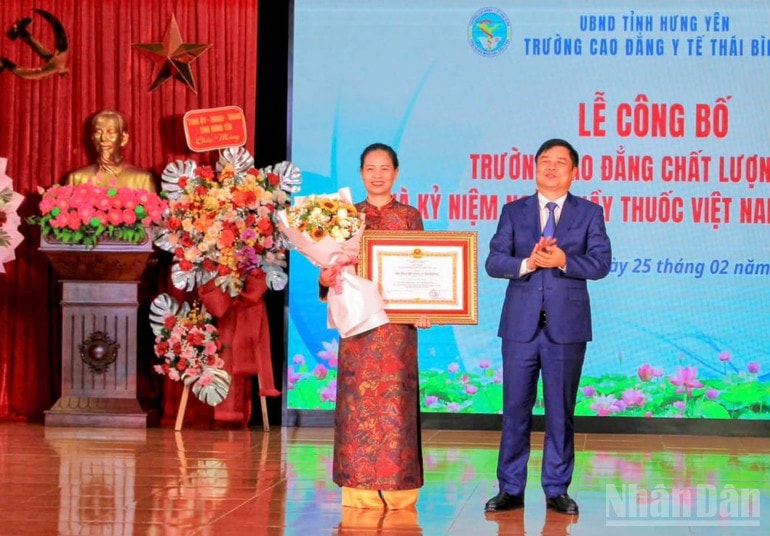 Chiều 25/2, đông đảo cán bộ, giáo viên và sinh viên Trường cao đẳng Y tế Thái Bình (tỉnh Hưng Yên) chứng kiến Lễ công bố trường đạt chuẩn chất lượng cao. Đây là niềm vinh dự, tự hào của tập thể nhà trường sau nhiều năm nỗ lực phấn đấu bền bỉ, nghiêm túc, trách nhiệm.