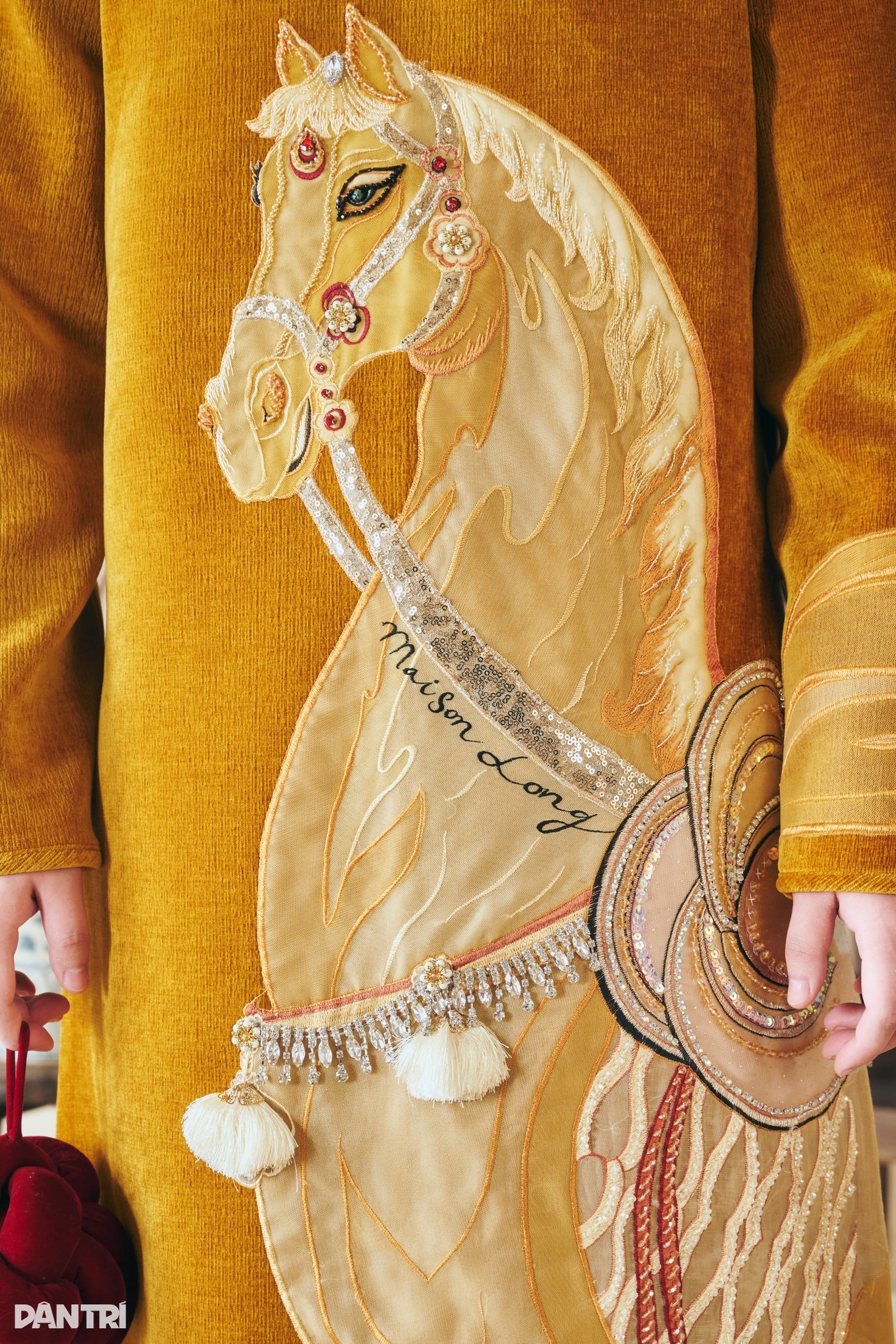 Với bộ sưu tập L’Heure, Maison LONG đã chọn một hướng đi khác biệt, tiết chế hơn khi đưa biểu tượng ngựa vào thiết kế áo dài nam mang tên “Trường Mã”.