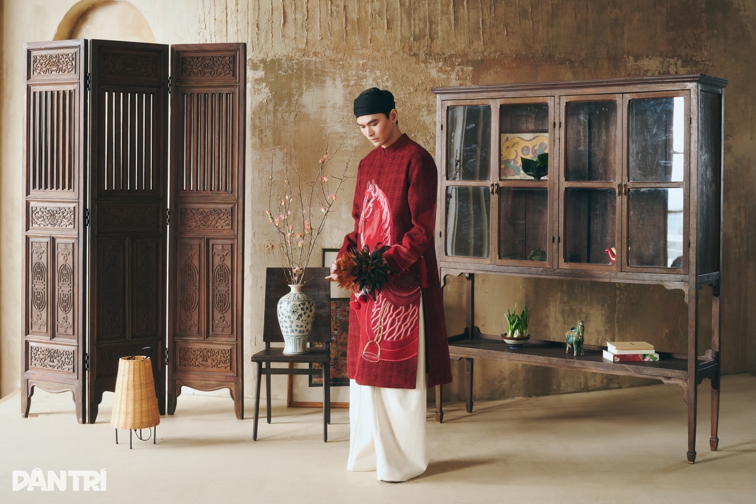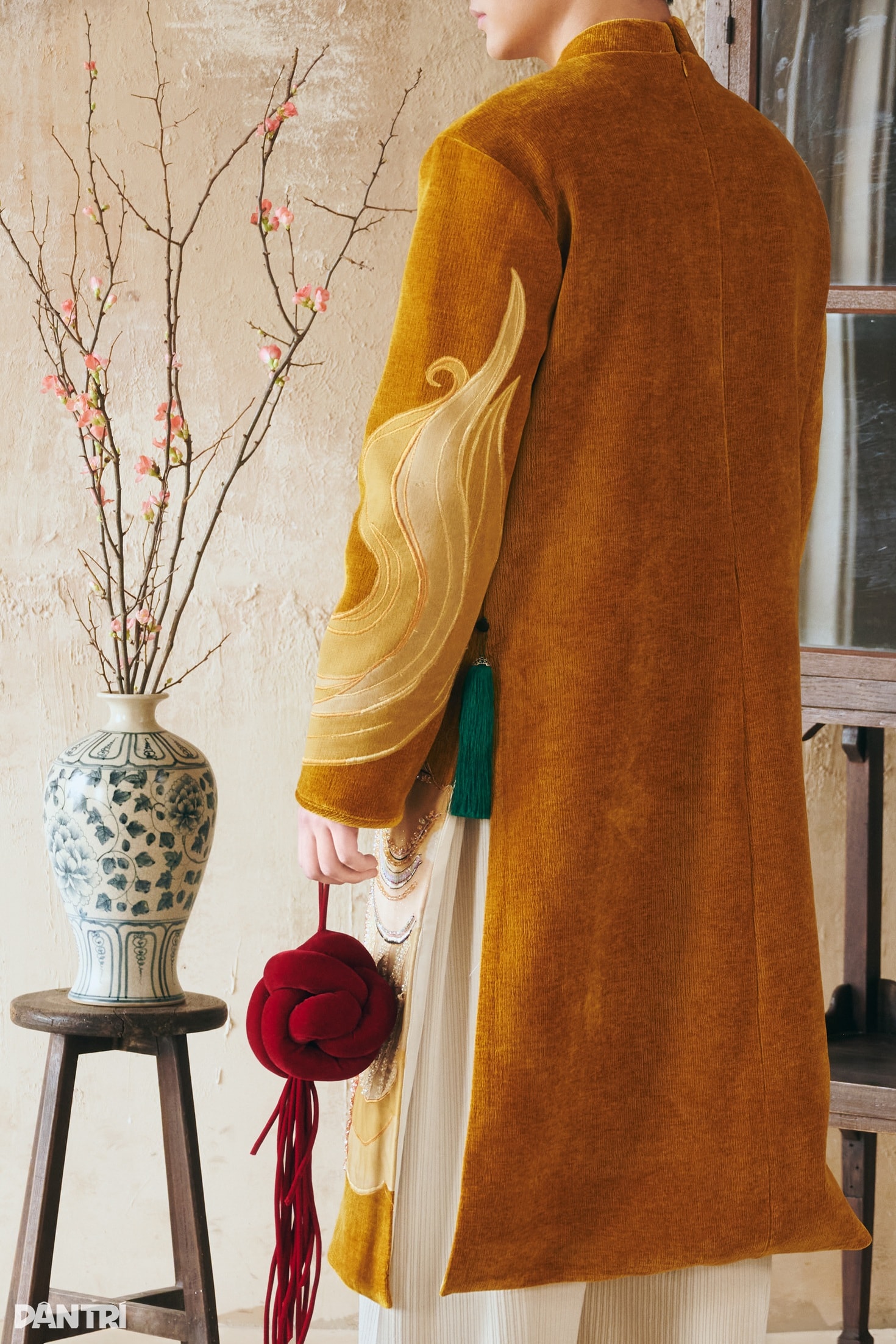 Với bề mặt mờ, sợi ngắn và độ bắt sáng vừa phải, nhung thô không chỉ giữ ấm tốt hơn cotton hoặc lụa thông thường mà còn không gây cảm giác nặng nề. Khi được ứng dụng trên phom áo dài nam, chất liệu này giúp trang phục đứng dáng rõ rệt, đồng thời mang lại cảm giác ấm áp, rất phù hợp với không khí đầu năm.